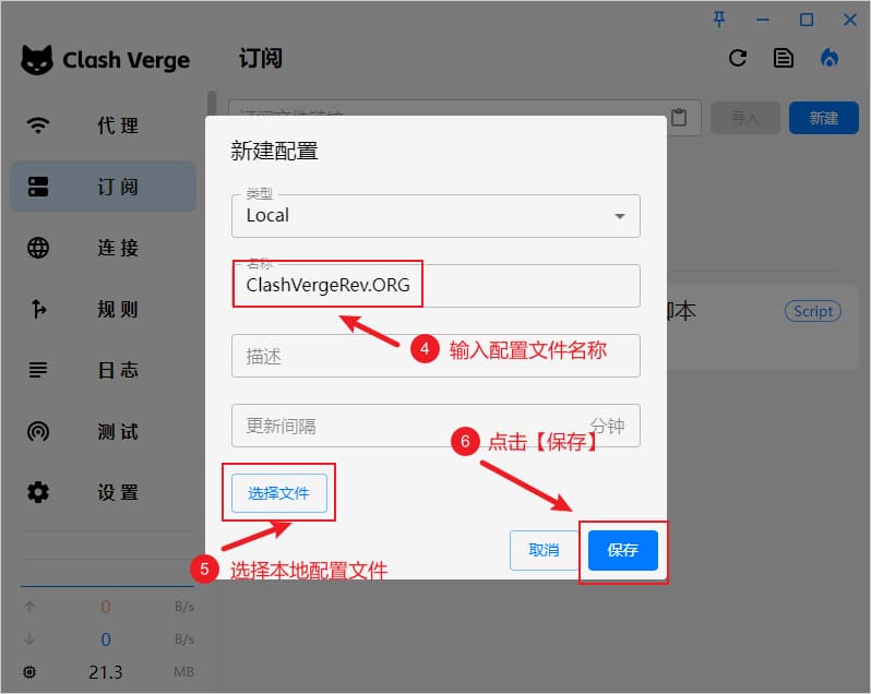 输入配置文件名称后点击选择文件按钮选择本地配置文件,最后点击保存添加本地配置文件,如下图所示。
